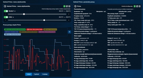 Urządzenie pozwalające na zdalną kontrolę pracy pompy ciepła Prima przez internet. Użytkownik kontroluje w aplikacji lub na ekranie komputera domowego stan urządzenia.